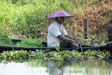 Boatman with harvested vegetation, Kerala backwaters