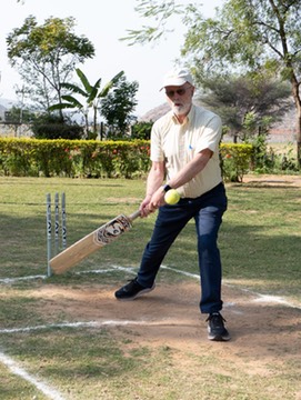 I try my hand at cricket, The Clement Retreat, Dera Village, Rajasthan