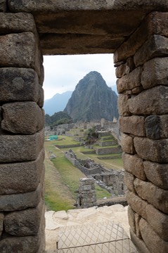 Huayna Picchu through doorway, Machu Picchu