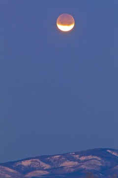 Partially eclipsed moon begins to set over the Jemez Mountains
